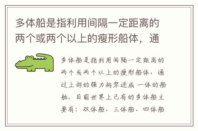 由于题目中未提供船舶图片,无法直接观察船体数量。不过根据多体船的定义(两个或以上瘦形船体通过上部构架连接)及常见分类,若图中船舶具有两个明显分离的船体,则属于双体船(A选项);若为三个船体,则是三体船(B选项),以此类推。
