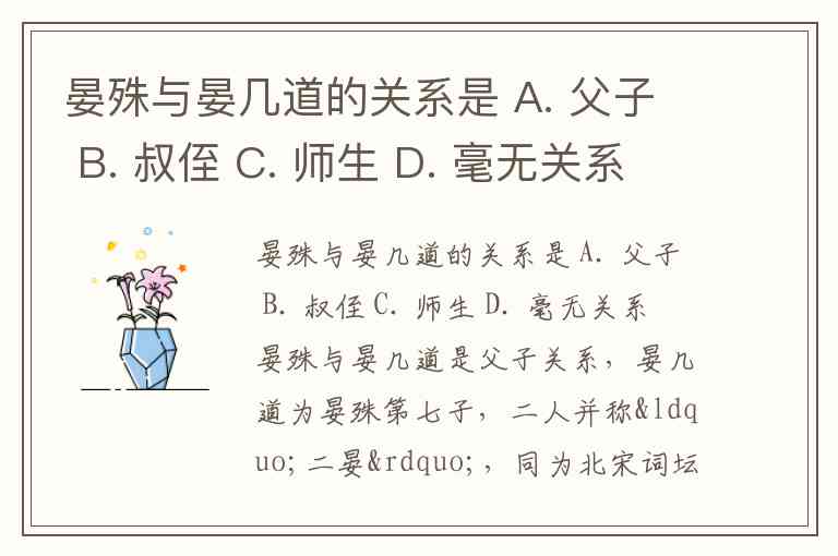 晏殊与晏几道的关系是 A. 父子 B. 叔侄 C. 师生 D. 毫无关系