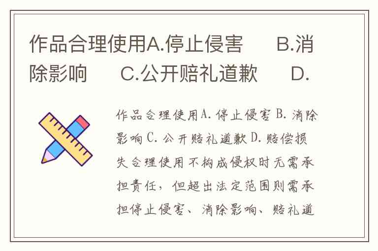 作品合理使用A.停止侵害 B.消除影响 C.公开赔礼道歉 D.赔偿损失