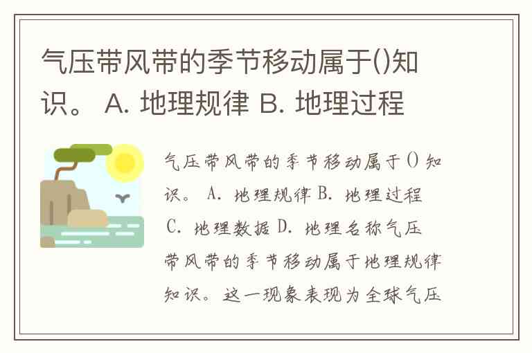 气压带风带的季节移动属于()知识。 A. 地理规律 B. 地理过程 C. 地理数据 D. 地理名称