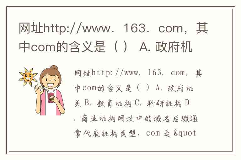 网址http://www.163.com,其中com的含义是( ) A. 政府机关 B. 教育机构 C. 科研机构 D. 商业机构