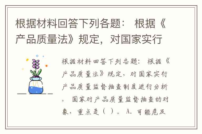 根据材料回答下列各题: 根据《产品质量法》规定,对国家实行产品质量监督抽查制度进行分析。 国家对产品质量监督抽查的对象,重点是( )。 A. 可能危及人体健康和人身、财产安全的产品 B. 影响国计民生的重要工业产品 C. 假冒伪劣产品 D. 消费者、有关组织反映有质量问题的产品