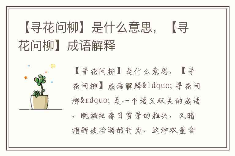 【寻花问柳】是什么意思,【寻花问柳】成语解释