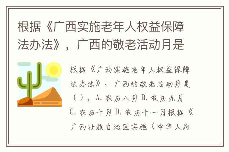 根据《广西实施老年人权益保障法办法》,广西的敬老活动月是()。A.农历八月 B.农历九月 C.农历十月 D.农历十一月