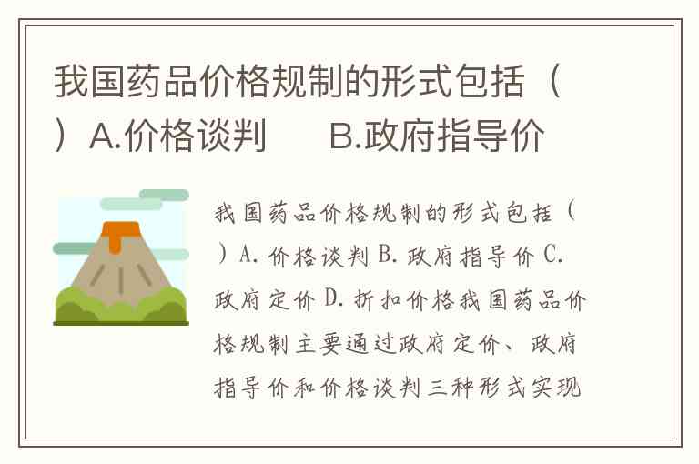 我国药品价格规制的形式包括()A.价格谈判 B.政府指导价 C.政府定价 D.折扣价格