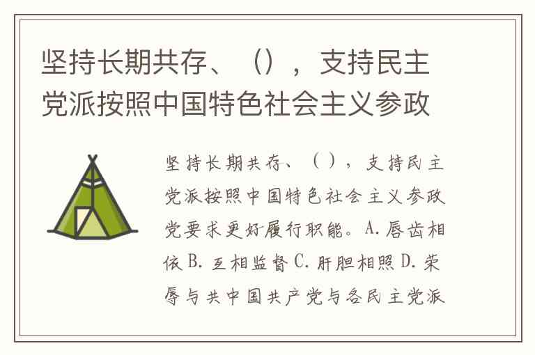 坚持长期共存、(),支持民主党派按照中国特色社会主义参政党要求更好履行职能。A.唇齿相依 B.互相监督 C.肝胆相照 D.荣辱与共
