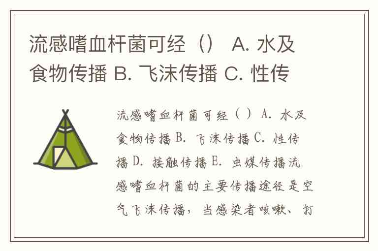 流感嗜血杆菌可经() A. 水及食物传播 B. 飞沫传播 C. 性传播 D. 接触传播 E. 虫媒传播