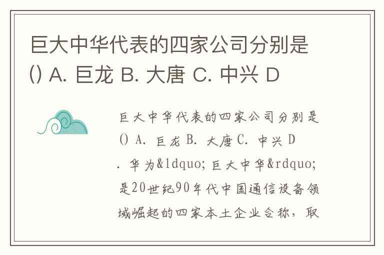 巨大中华代表的四家公司分别是() A. 巨龙 B. 大唐 C. 中兴 D. 华为