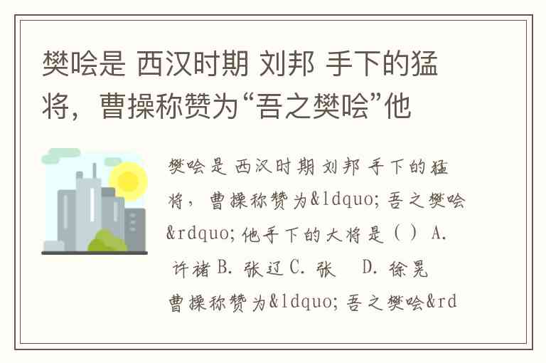 樊哙是 西汉时期 刘邦 手下的猛将,曹操称赞为“吾之樊哙”他手下的大将是() A. 许褚 B. 张辽 C. 张郃 D. 徐晃