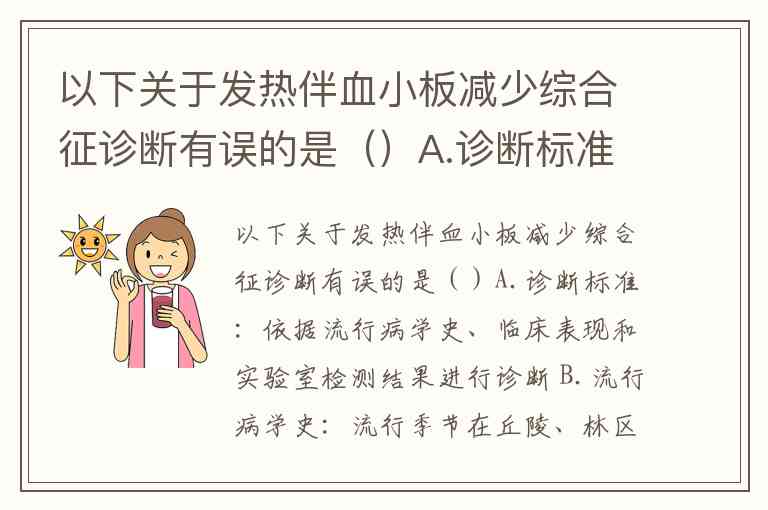 这一错误提示临床诊断时需特别注意血常规指标的方向性——血小板和白细胞减少是区分该疾病与其他感染性疾病的关键实验室依据之一。