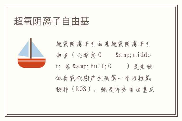 超氧阴离子自由基(化学式 O₂⁻· 或 •O₂⁻)是生物体有氧代谢产生的第一个活性氧物种(ROS),既是许多自由基反应的起点,也是维持氧化还原平衡的关键角色。它由氧分子接受单个电子还原生成,外层轨道含未配对电子,使其兼具氧化性与还原性,能作为氧化剂夺取电子,或作为还原剂释放电子。
