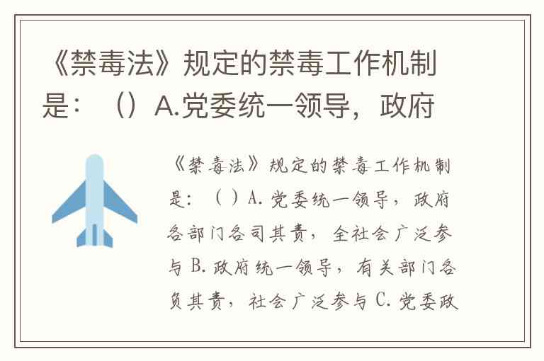 《禁毒法》规定的禁毒工作机制是:()A.党委统一领导,政府各部门各司其责,全社会广泛参与 B.政府统一领导,有关部门各负其责,社会广泛参与 C.党委政府统一领导,各有关部门各司其责,社会广泛参与 D.党委政府领导,各有关部门各负其责,全社会广泛参与