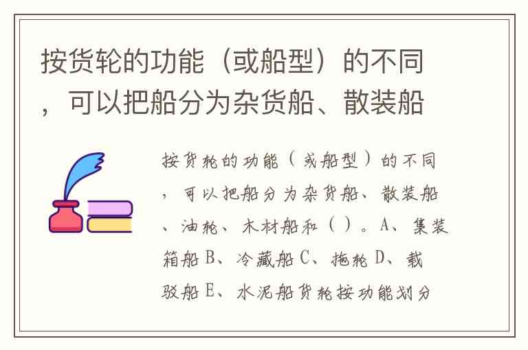 按货轮的功能(或船型)的不同,可以把船分为杂货船、散装船、油轮、木材船和()。A、集装箱船 B、冷藏船 C、拖轮 D、载驳船 E、水泥船