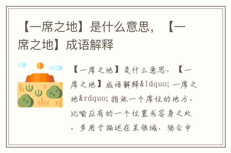 “一席之地”指放一个席位的地方,比喻应有的一个位置或容身之处,多用于描述在某领域、场合中获得立足机会。这个成语最早出自《旧唐书·后妃传上》,原文为“妇人智识不远,有忤盛情,然贵妃久承恩顾,何惜宫中一席之地,使其京戮,安忍取辱于外哉!”,原本指宫廷中容身的狭小空间,后逐渐演变为表示“获得合理位置”的固定表达。