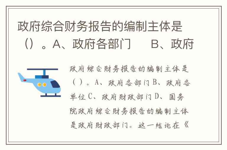 政府综合财务报告的编制主体是()。A、政府各部门 B、政府各单位 C、政府财政部门 D、国务院