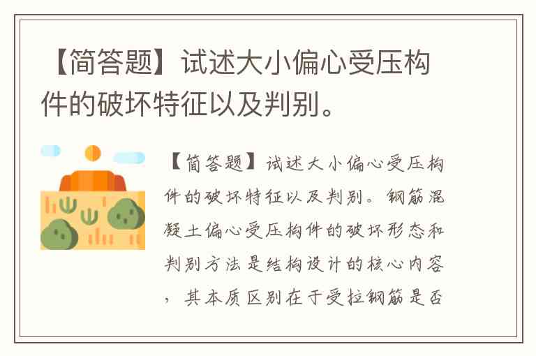 【简答题】试述大小偏心受压构件的破坏特征以及判别。