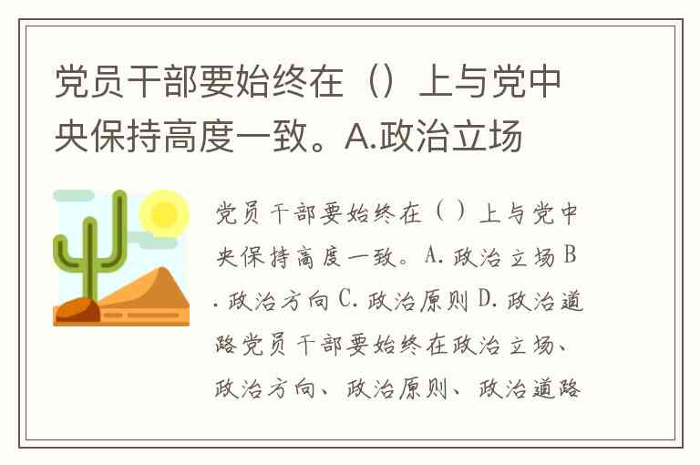 党员干部要始终在()上与党中央保持高度一致。A.政治立场 B.政治方向 C.政治原则 D.政治道路