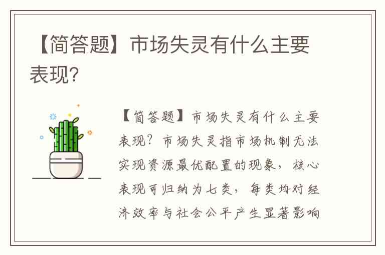 市场失灵指市场机制无法实现资源最优配置的现象,核心表现可归纳为七类,每类均对经济效率与社会公平产生显著影响。