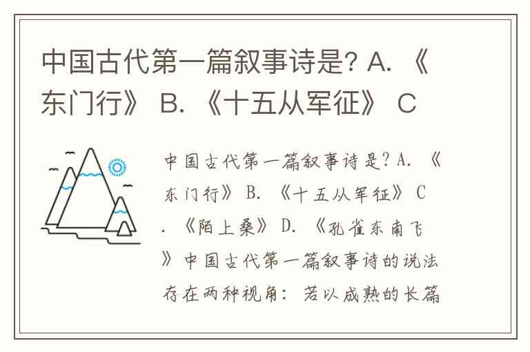 中国古代第一篇叙事诗是? A. 《东门行》 B. 《十五从军征》 C. 《陌上桑》 D. 《孔雀东南飞》