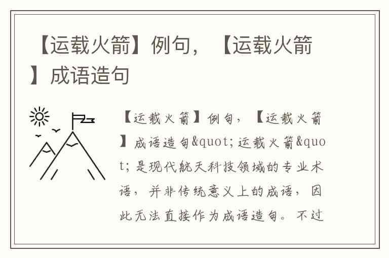 "运载火箭"是现代航天科技领域的专业术语,并非传统意义上的成语,因此无法直接作为成语造句。不过我们可以用这个科技词汇构造符合现代汉语语法的例句,展现其在航天语境中的应用: