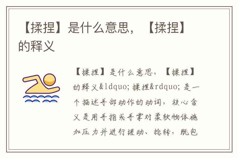 “揉捏”是一个描述手部动作的动词,核心含义是用手指或手掌对柔软物体施加压力并进行搓动、捻转,既包含捏握的力度,也包含揉动的轨迹。这种动作既能改变物体形态(如揉捏面团塑形),也能产生触感互动(如揉捏橘子使其汁液流动)。