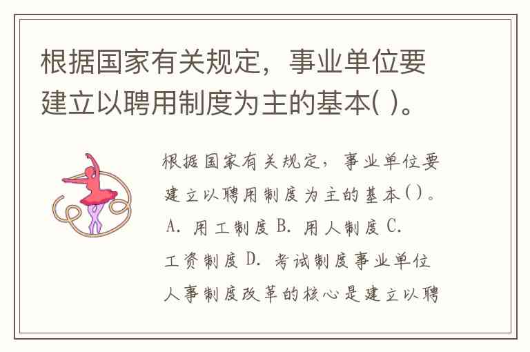 根据国家有关规定,事业单位要建立以聘用制度为主的基本( )。 A. 用工制度 B. 用人制度 C. 工资制度 D. 考试制度