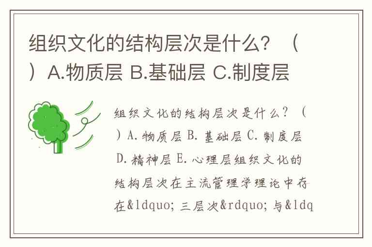 组织文化的结构层次是什么?()A.物质层 B.基础层 C.制度层 D.精神层 E.心理层