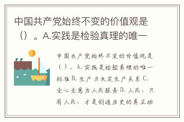 中国共产党始终不变的价值观是()。A.实践是检验真理的唯一标准 B.生产力决定生产关系 C.全心全意为人民服务 D.人民,只有人民,才是创造历史的真正动力