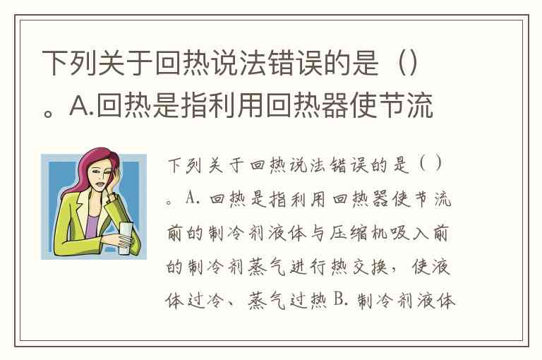 选项B错误的关键在于混淆了参与换热的工质状态:回热器中冷却高压液体的是低压低温蒸气(来自蒸发器),而非“高压蒸汽”。高压蒸汽实际存在于压缩机出口至冷凝器入口的流程中,与回热器内的液体冷却过程无关。