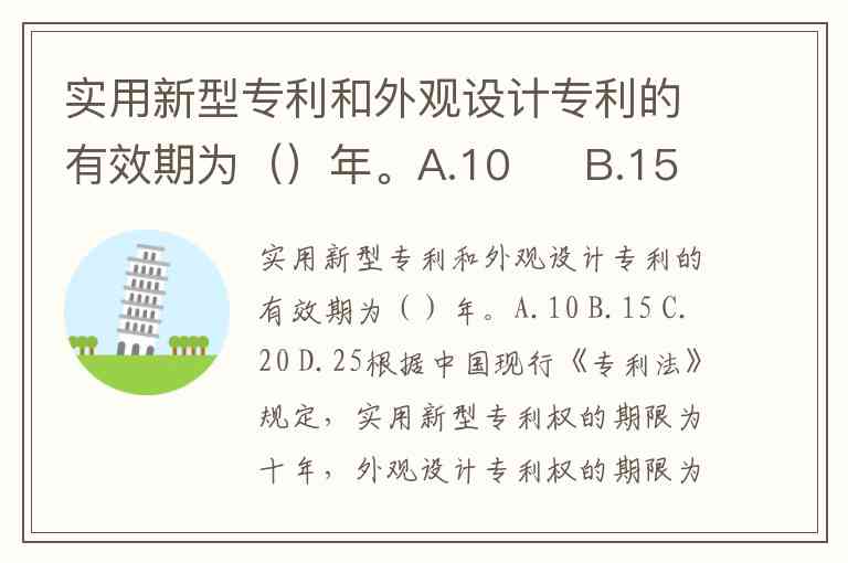 实用新型专利和外观设计专利的有效期为()年。A.10 B.15 C.20 D.25