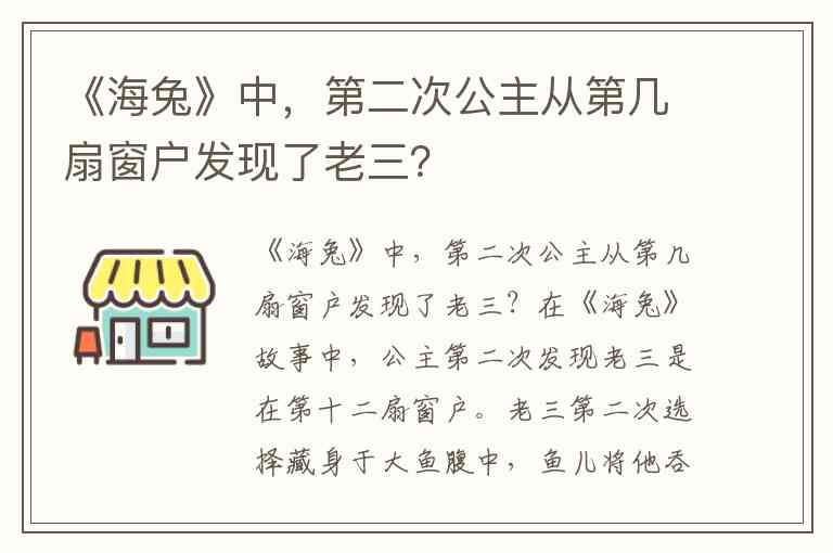 《海兔》中,第二次公主从第几扇窗户发现了老三?