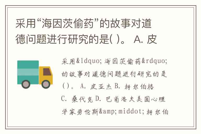 采用“海因茨偷药”的故事对道德问题进行研究的是( )。 A. 皮亚杰 B. 柯尔伯格 C. 桑代克 D. 巴甫洛夫