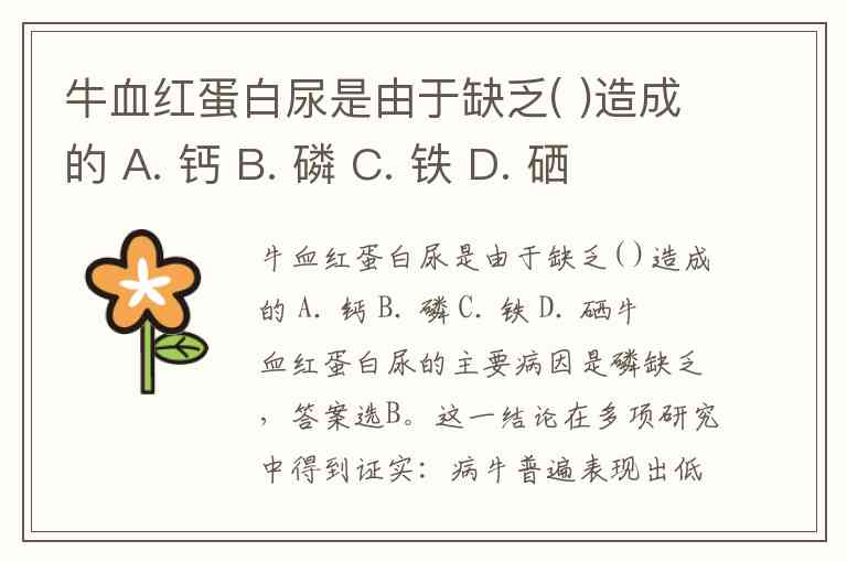 牛血红蛋白尿是由于缺乏( )造成的 A. 钙 B. 磷 C. 铁 D. 硒
