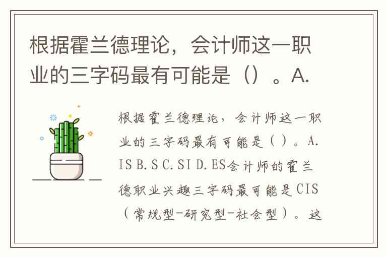 根据霍兰德理论,会计师这一职业的三字码最有可能是()。A.IS B.S C.SI D.ES
