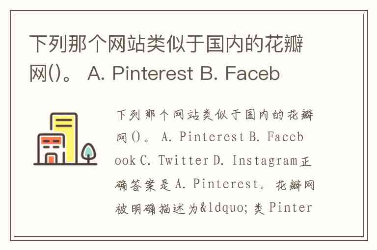 下列那个网站类似于国内的花瓣网()。 A. Pinterest B. Facebook C. Twitter D. Instagram