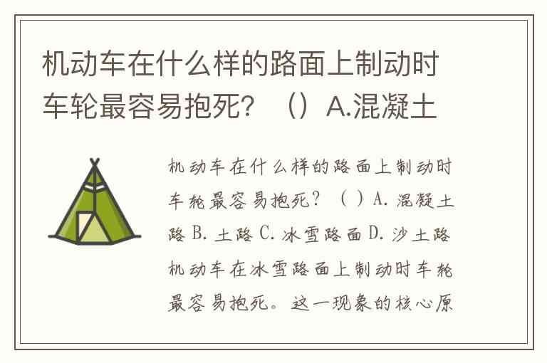 机动车在什么样的路面上制动时车轮最容易抱死?()A.混凝土路 B.土路 C.冰雪路面 D.沙土路
