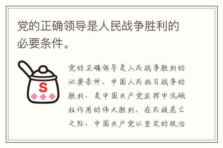 党的正确领导是人民战争胜利的必要条件。