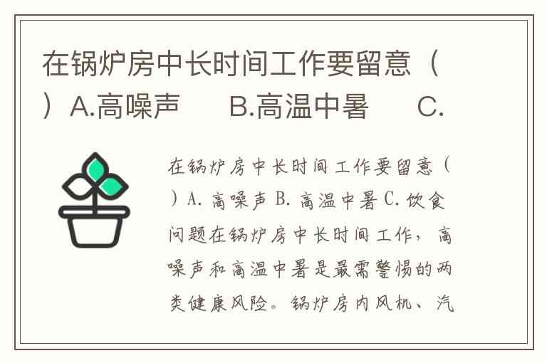 在锅炉房中长时间工作要留意()A.高噪声 B.高温中暑 C.饮食问题