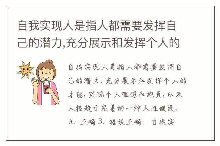 自我实现人是指人都需要发挥自己的潜力,充分展示和发挥个人的才能,实现个人理想和抱负,以及人格趋于完善的一种人性假设。 A. 正确 B. 错误
