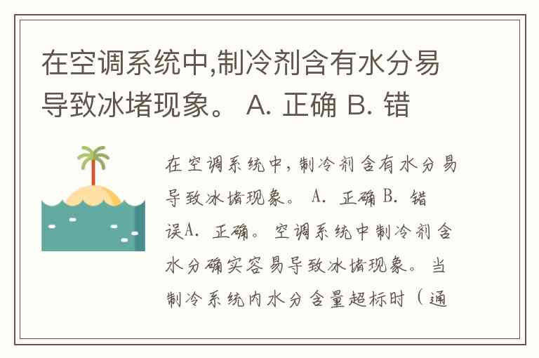 在空调系统中,制冷剂含有水分易导致冰堵现象。 A. 正确 B. 错误