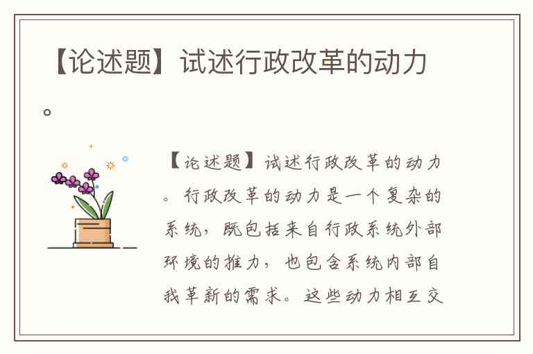 行政改革的动力是一个复杂的系统,既包括来自行政系统外部环境的推力,也包含系统内部自我革新的需求。这些动力相互交织、共同作用,推动着行政体制不断调整以适应社会发展。