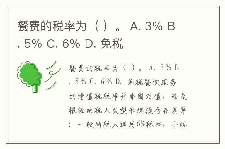 餐费的税率为( )。 A. 3% B. 5% C. 6% D. 免税