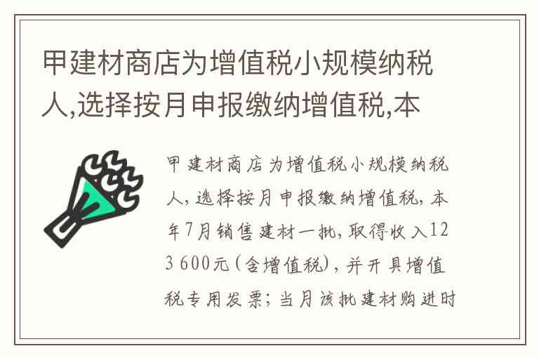 甲建材商店为增值税小规模纳税人,选择按月申报缴纳增值税,本年7月销售建材一批,取得收入123 600元(含增值税),并开具增值税专用发票;当月该批建材购进时取得的增值税专用发票上注明价款12 000元(含增值税)。该建材商店本月应纳增值税为 ( )元。 A. 17 000 B. 1 800 C. 3 600 D. 1890