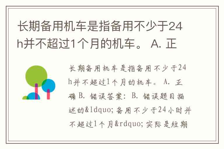 综上,题目混淆了短期与长期备用机车的定义,正确答案应为错误。那么,你认为这种分类方式对铁路运输调度效率有何具体影响?