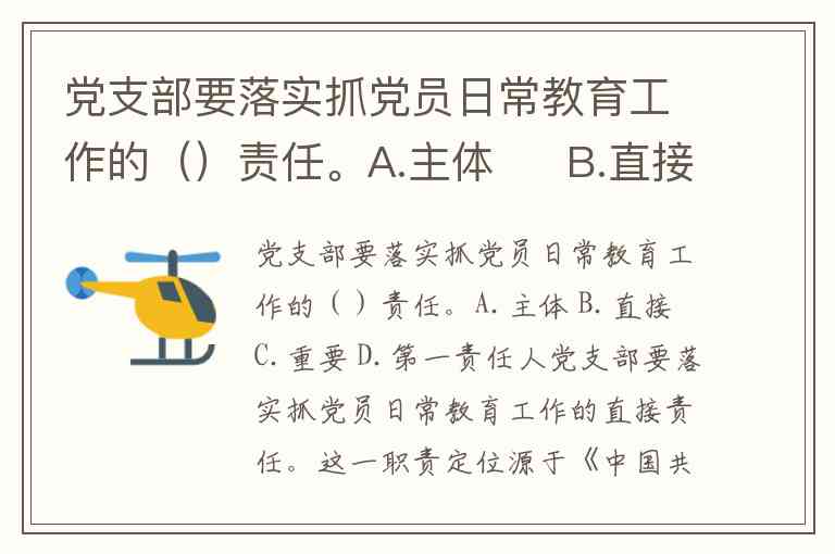 党支部要落实抓党员日常教育工作的()责任。A.主体 B.直接 C.重要 D.第一责任人