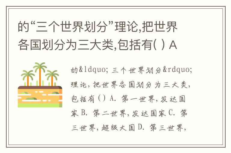 的“三个世界划分”理论,把世界各国划分为三大类,包括有( ) A. 第一世界,发达国家 B. 第二世界,发达国家 C. 第三世界,超级大国 D. 第三世界,发展中国家
