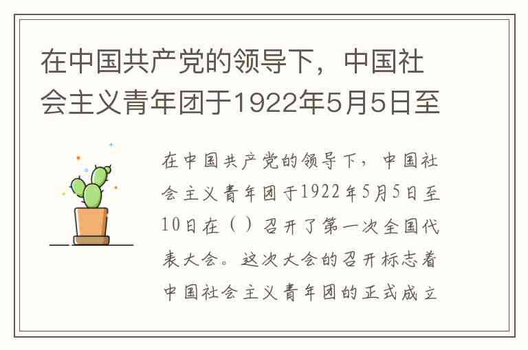 在中国共产党的领导下,中国社会主义青年团于1922年5月5日至10日在()召开了第一次全国代表大会。这次大会的召开标志着中国社会主义青年团的正式成立。A.广州 B.上海 C.北京