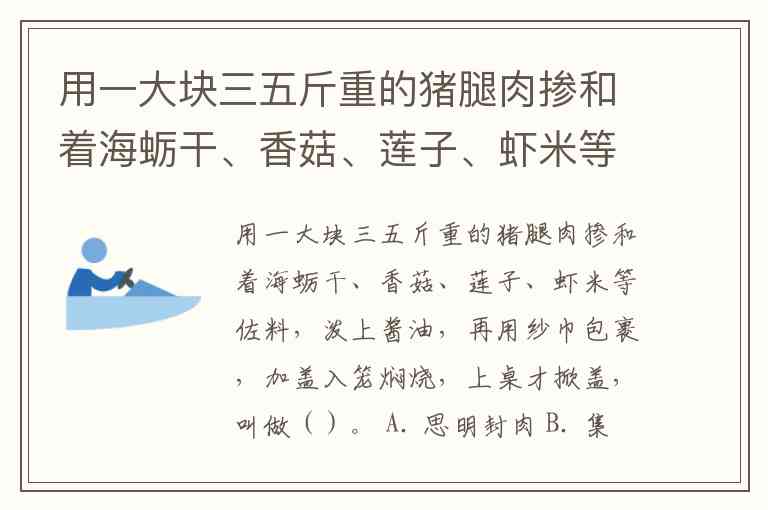 用一大块三五斤重的猪腿肉掺和着海蛎干、香菇、莲子、虾米等佐料,泼上酱油,再用纱巾包裹,加盖入笼焖烧,上桌才掀盖,叫做()。 A. 思明封肉 B. 集美封肉 C. 同安封肉 D. 鼓浪屿封肉
