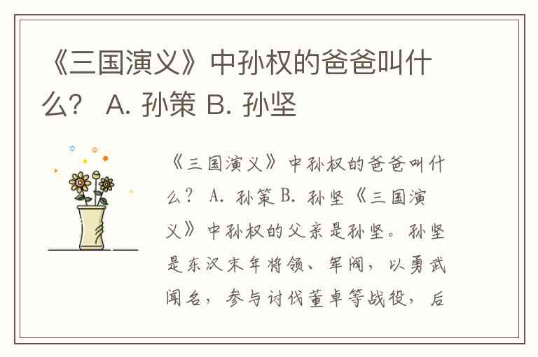 《三国演义》中孙权的爸爸叫什么? A. 孙策 B. 孙坚