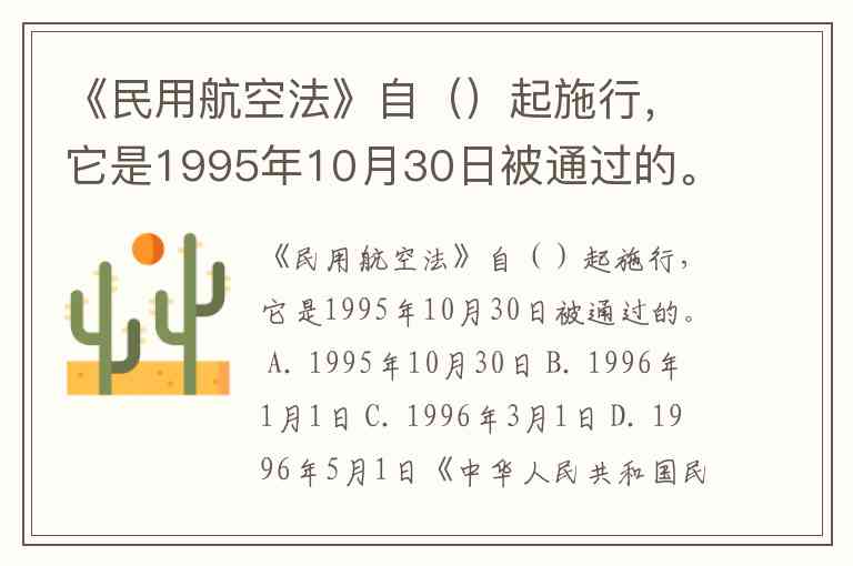 《民用航空法》自()起施行,它是1995年10月30日被通过的。 A. 1995年10月30日 B. 1996年1月1日 C. 1996年3月1日 D. 1996年5月1日
